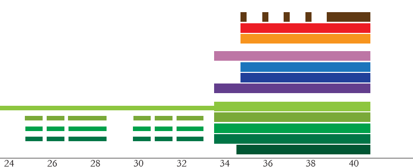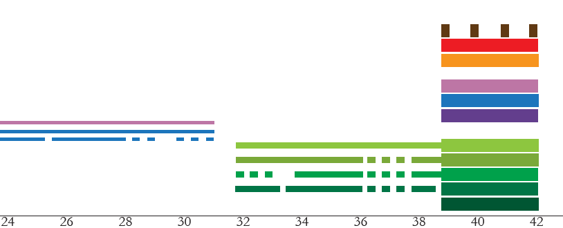 Fig. 3.4 Orchestral graph of Haydn, Symphony No. 100 in G major, “Military,” movement I, mm. 24–42.