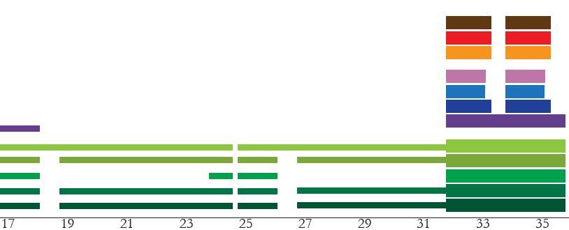 Fig. 3.3 Orchestral graph of Haydn, Symphony No. 104 in D major, movement I, mm. 17–35.