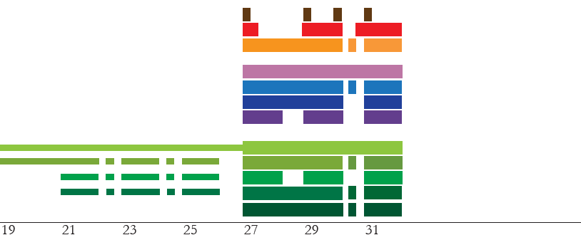 Fig. 3.2 Orchestral graph of Haydn, Symphony No. 101 in D major, movement I, mm. 19–31.